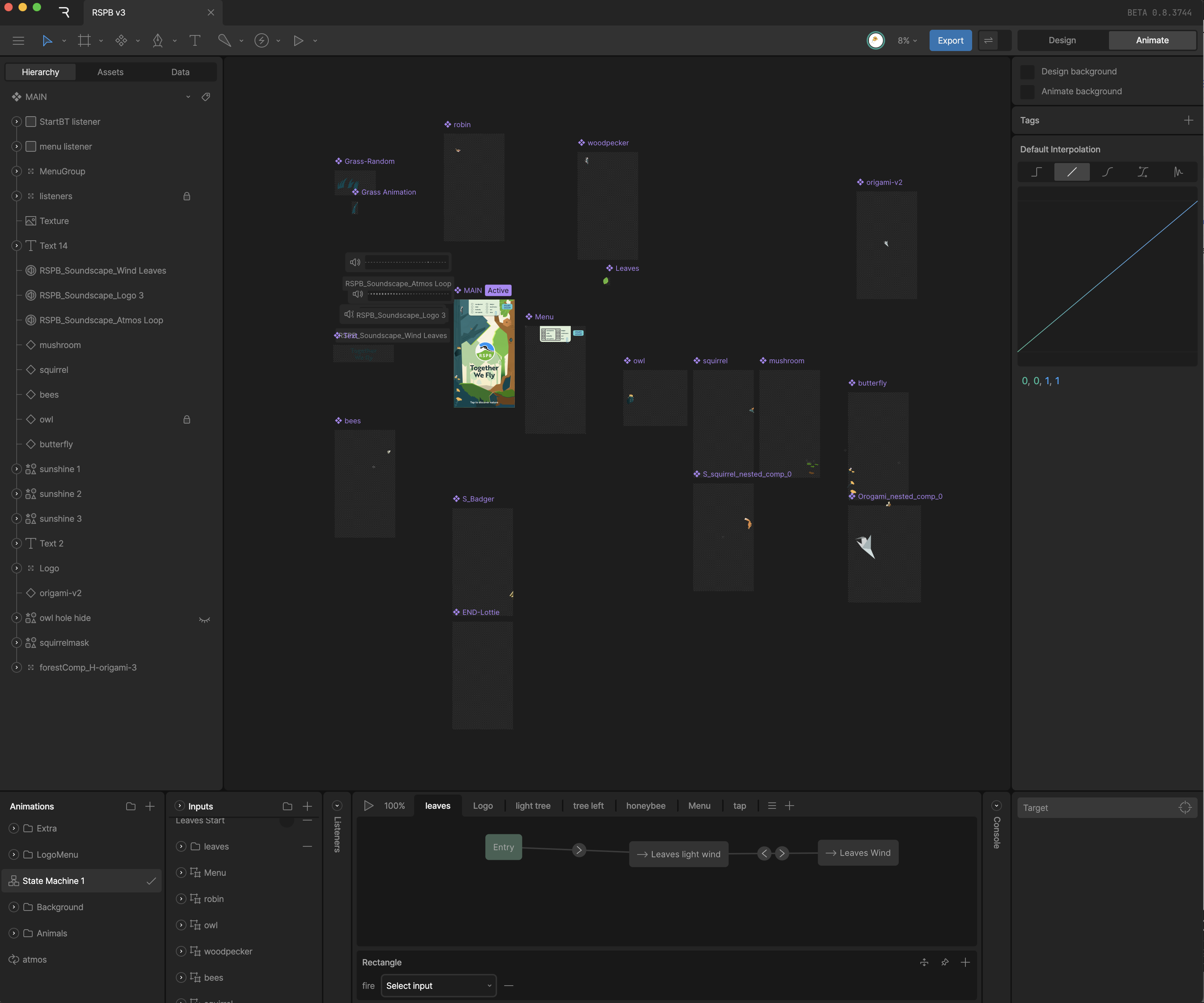 I was invited by John Lumgair to create an interactive animation as part of a larger RSPB installation inside the Trafford Centre in Manchester. The theme was origami, featuring 1,000 paper cranes displayed around bamboo sticks. The interactive animation was designed to invite people to engage and feel a connection with nature by finding the animals hidden in the scene, ultimately encouraging support for the RSPB.